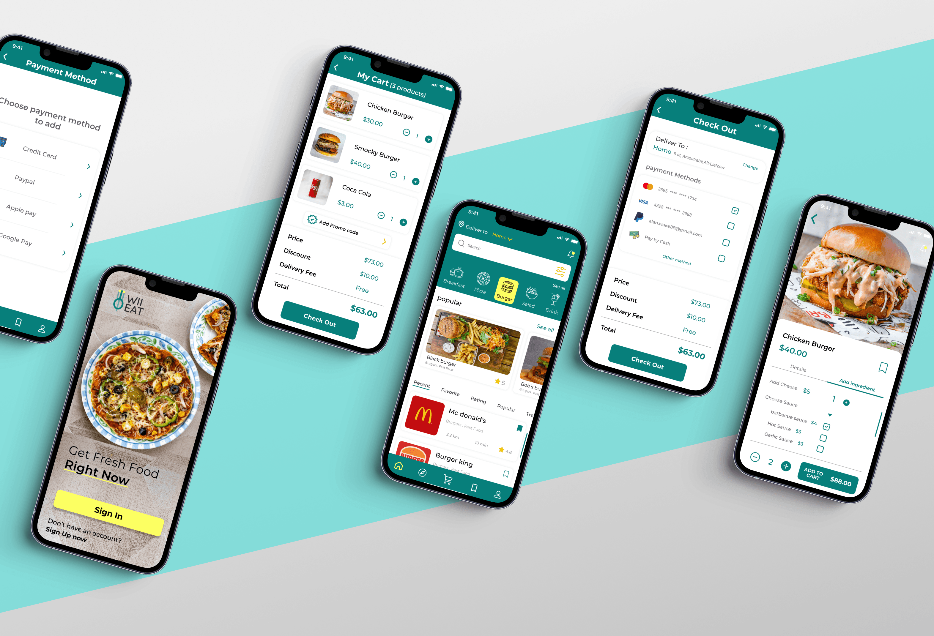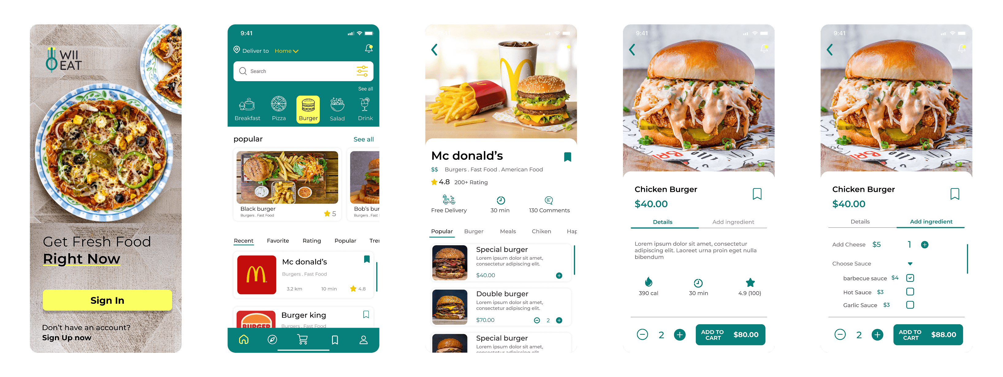WII EAT is a food delivery app designed to give hungry users seamless access to multiple restaurants through a single, unified mobile platform. The app allows users to browse menus, compare prices and ratings, place orders, track deliveries in real time, and submit feedback all within a clean, modern interface built for any age group.