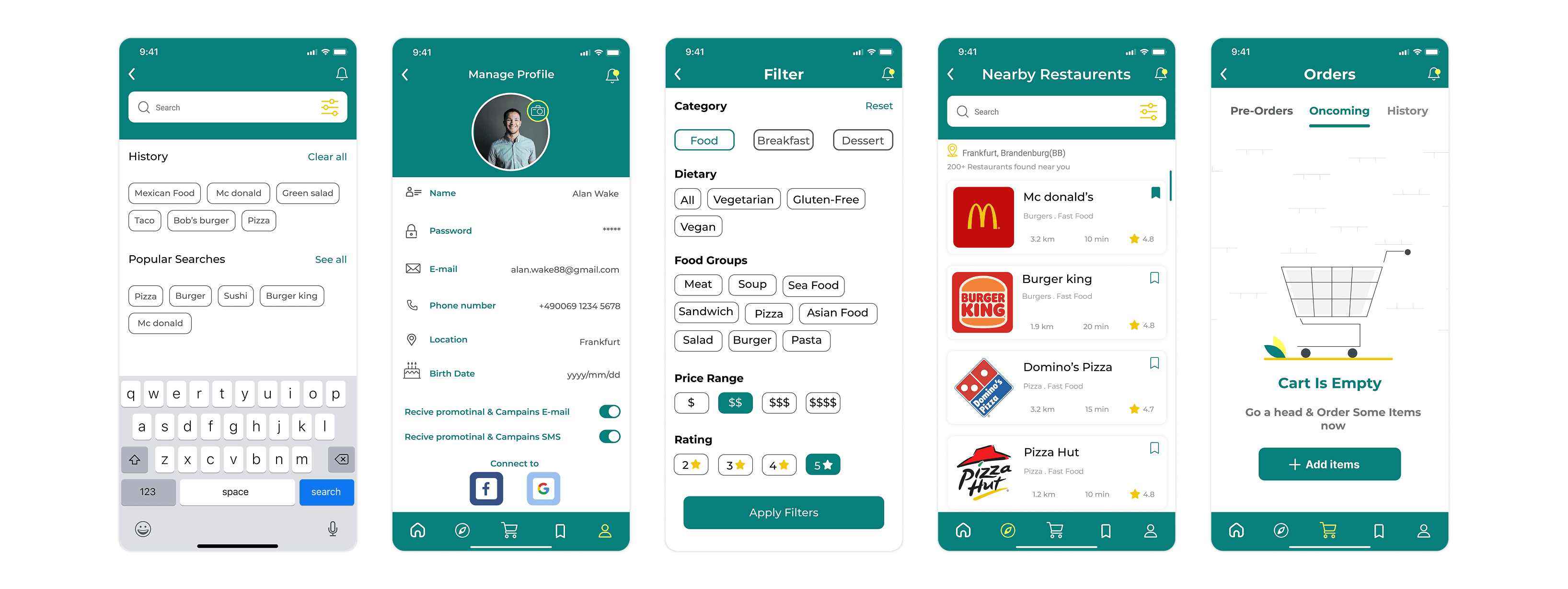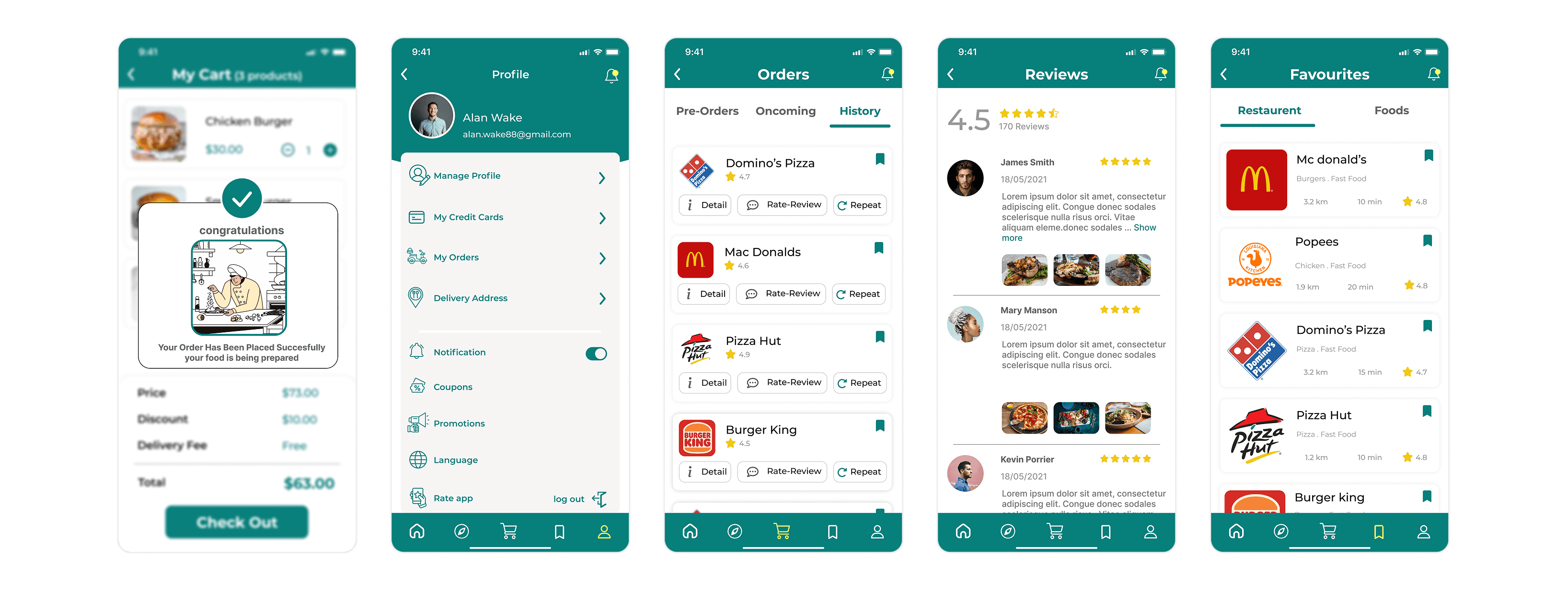 Solution: The profile section stores saved addresses, preferred payment methods, and a full order history with one-tap reorder. A Saved tab on the main navigation lets users bookmark favourite restaurants.