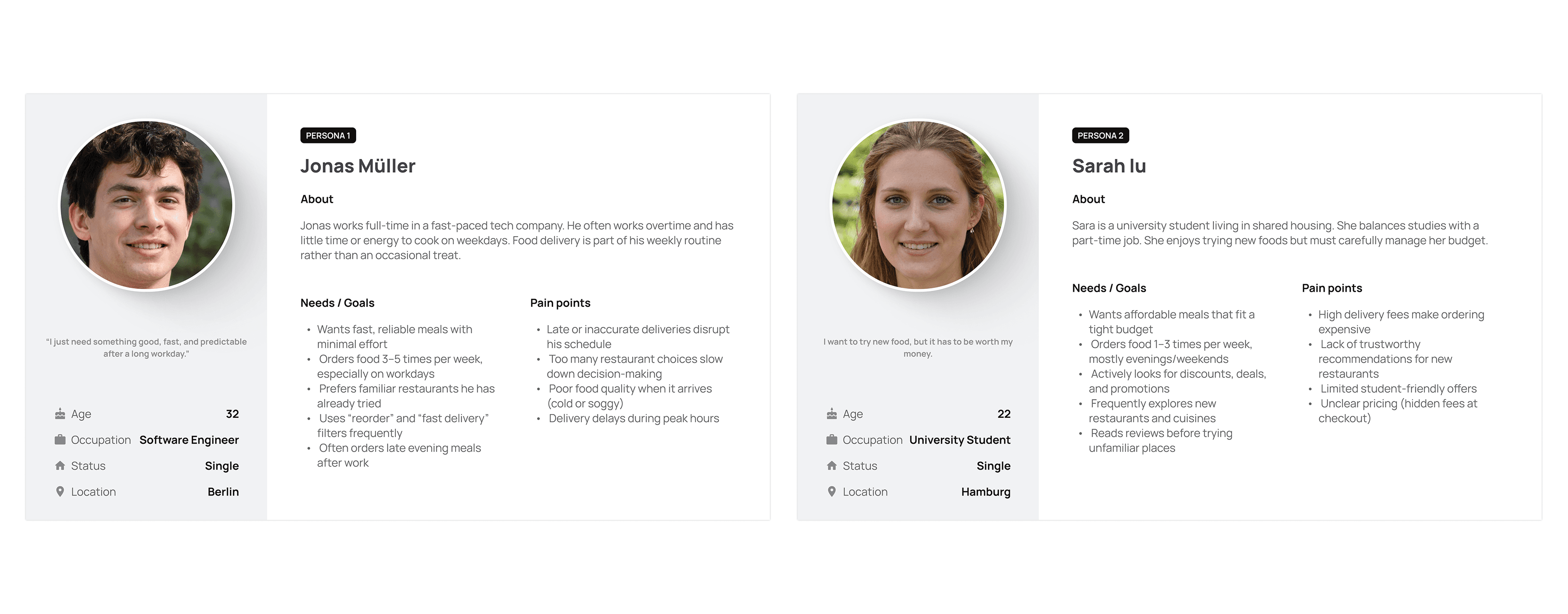 • Urban professionals aged 22–40 who order food 3–5 times per week and value speed and reliability