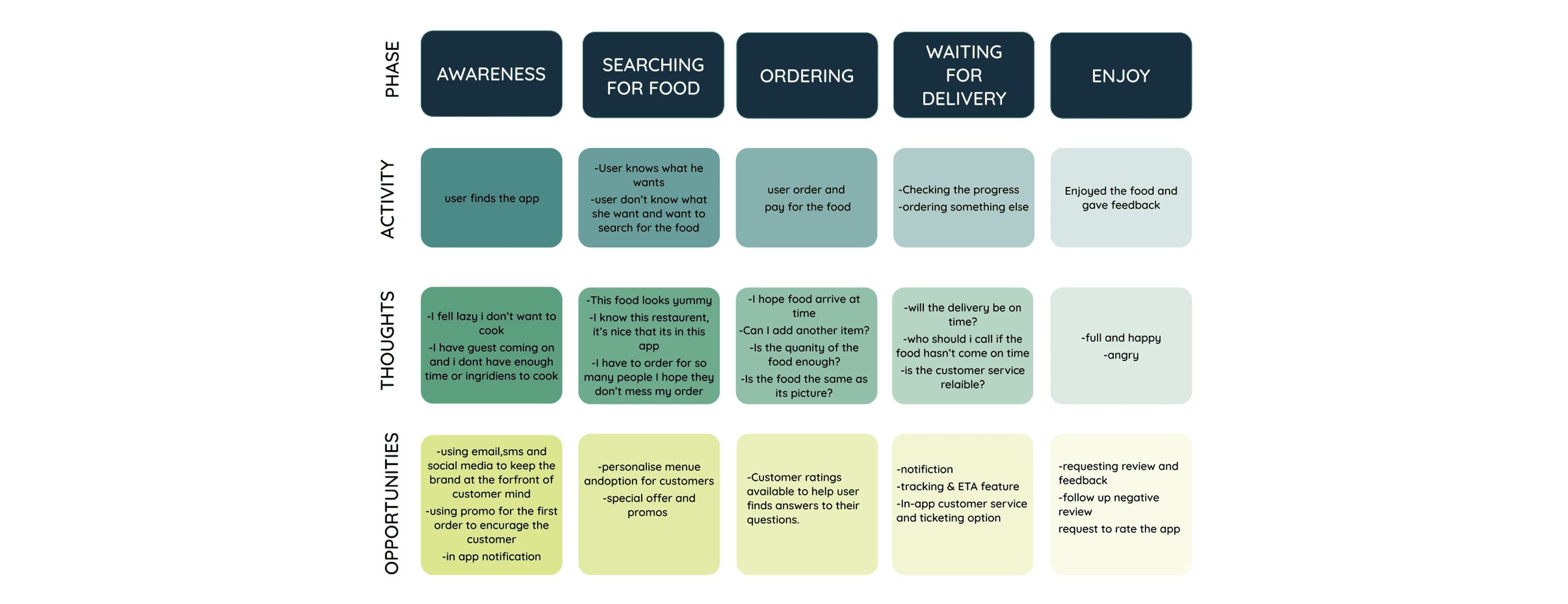 The research phase combined competitive analysis, heuristic evaluation of existing apps, persona development informed by public industry data on food delivery behaviour. We also conducted informal user interviews with 8 participants across different age groups to validate key assumptions.