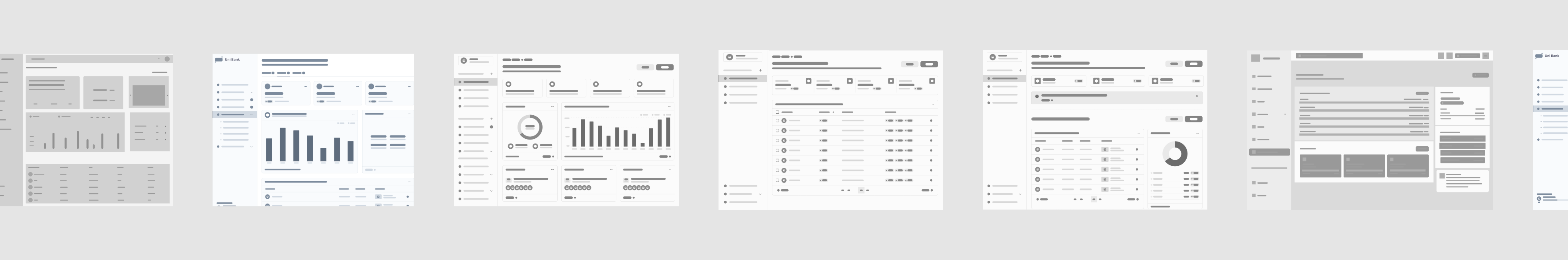 Structurally, UniBank is built around a fixed left sidebar, a persistent topbar, and a card-based content grid that stays consistent across all seven screens. The visual language is deliberately restrained: an off-white background, white card surfaces, one primary blue, and a tightly controlled semantic color system that communicates status without decoration.