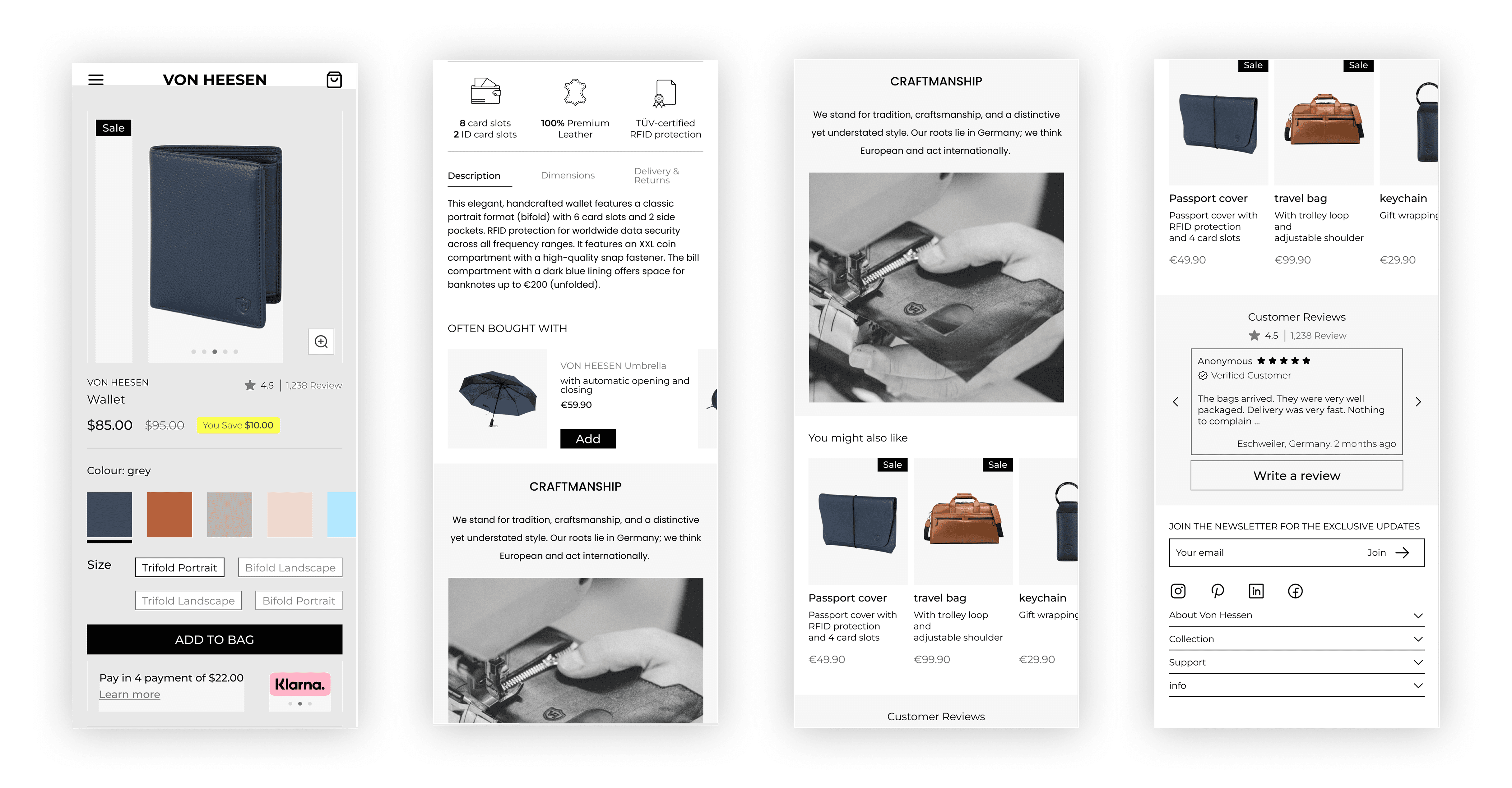 Von Heesen is a direct-to-consumer leather goods brand with a distinctive German craft identity. Their product pages carry strong brand equity premium materials, handcrafted construction, a loyal customer base but the digital experience wasn't doing justice to the physical product.